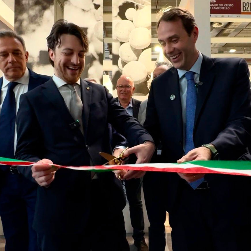Taglio del nastro nel Padiglione 2 con Sammartino e il presidente veneto Stefani. 28 cantine biologiche, i Consorzi Etna DOC e Assovini Sicilia in vetrina